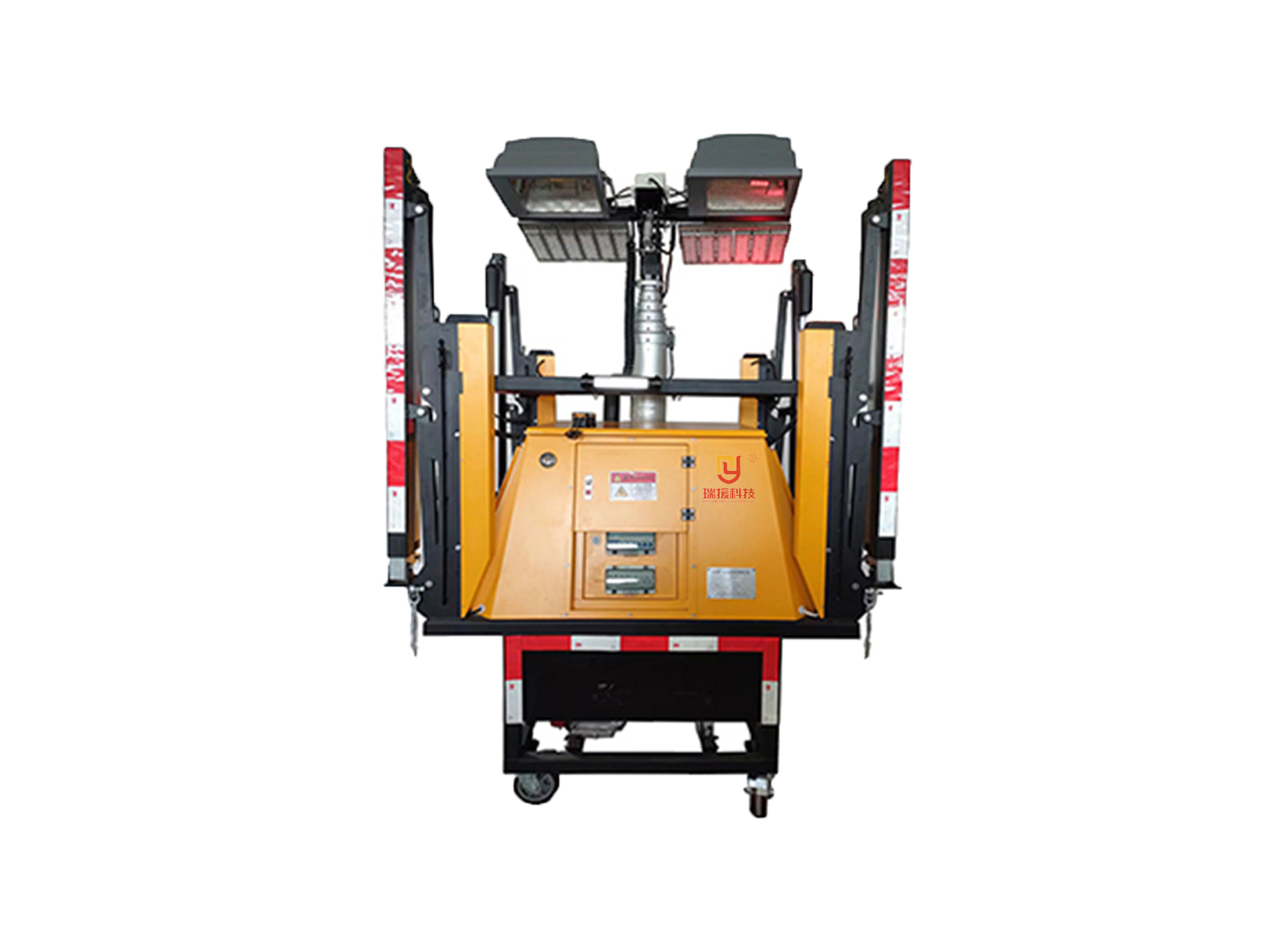 配备4个高强度尼龙脚轮,向下翻转,即可推行移动;向上翻起,就可稳定落地,既方便了短距离移动照明,又保证了设备运行时的安全可靠。